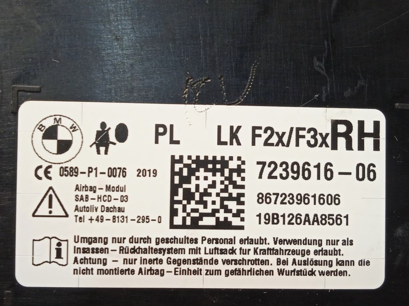 Recambio de airbag lateral delantero derecho para bmw 1 (f20) 118 i referencia OEM IAM 7239616 72127239616
