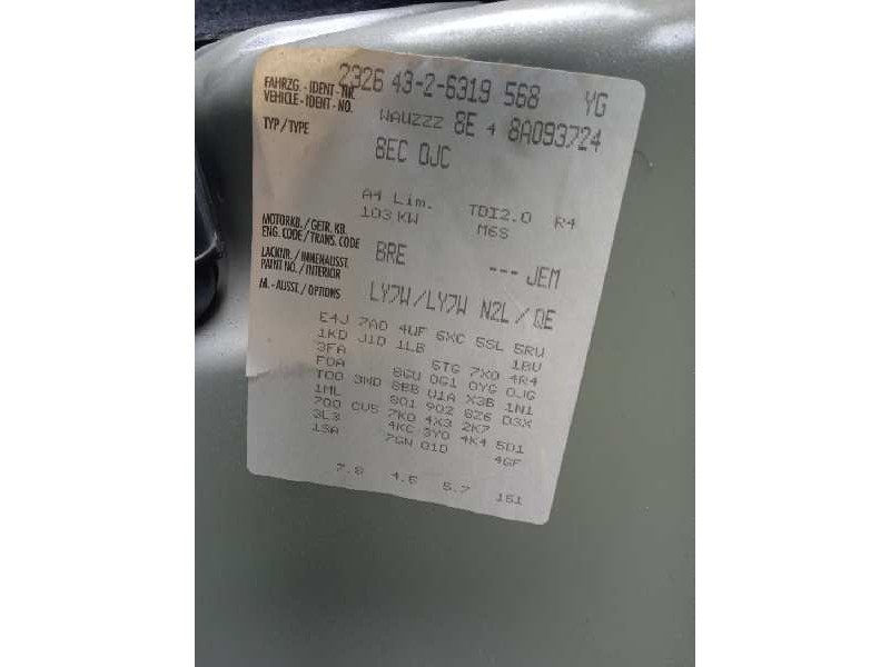 AUDI A4 BERLINA (8E) 2.0 TDI 16V (103KW). audi a4 berlina (8e) del año 2007