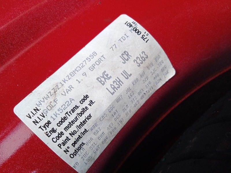 VOLKSWAGEN GOLF V VARIANT (1K5) 1.9 TDI. volkswagen golf v variant (1k5) del año 2008